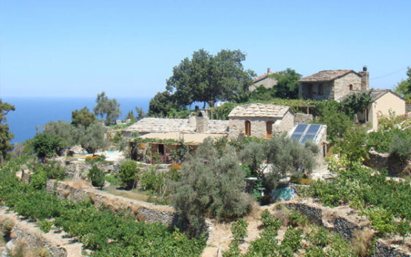 Το κτήμα έχει συνολική έκταση 50 περίπου στρεμμάτων. Σε διαφορετικές τοποθεσίες υπάρχουν ελιές, φρουτόδεντρα και λαχανόκηπος και μικρή φάρμα ζώων και πουλερικών. Όλες οι καλλιέργειες και οι γεωργικές δραστηριότητες είναι πιστοποιημένες σε οργανισμό βιολογικής γεωργίας.